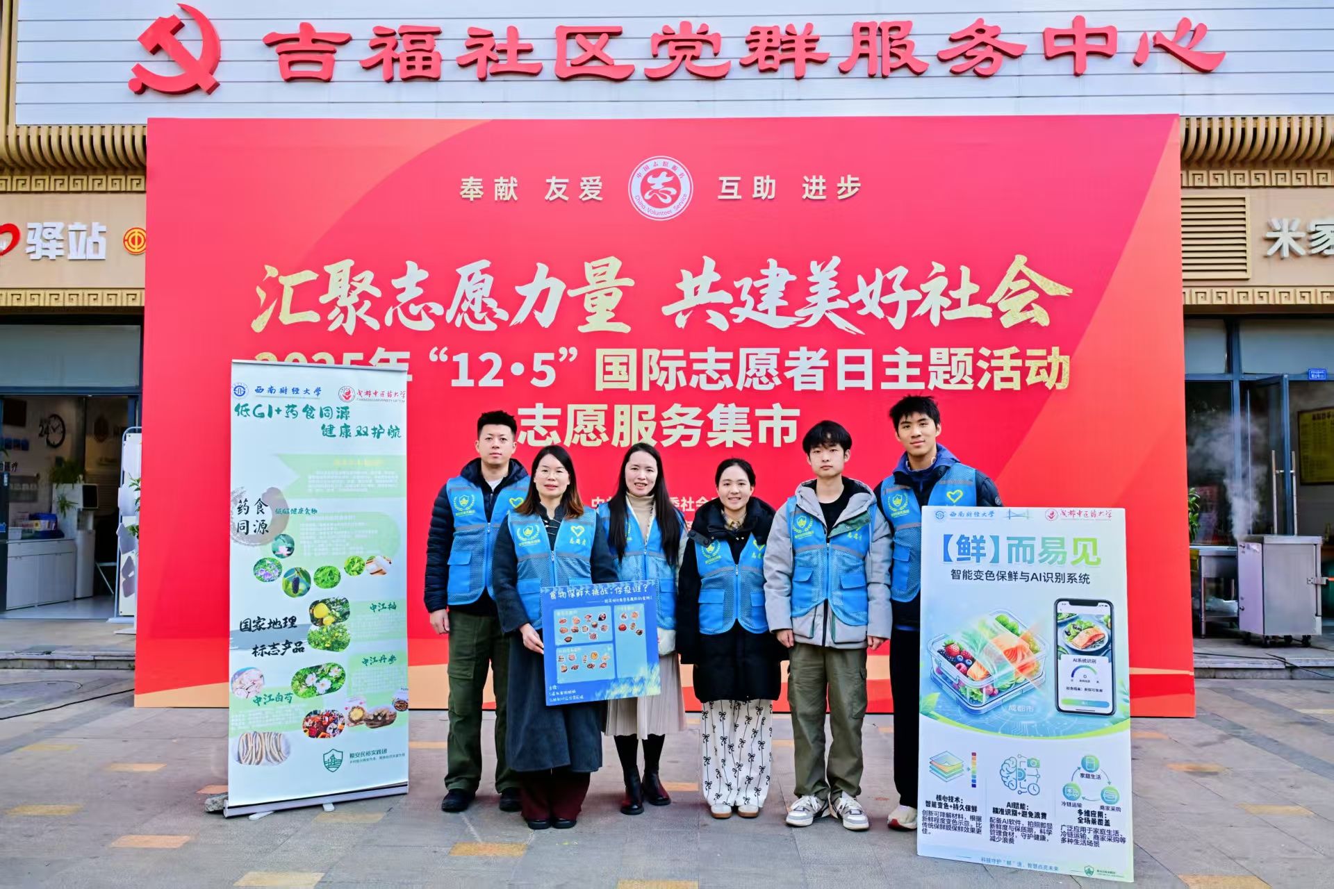 2025年“12·5”国际志愿者日到来之际,我校乡村振兴博士服务站“粮安民裕实践团”志愿服务队走进武侯区吉福社区,开展健康科普志愿服务。